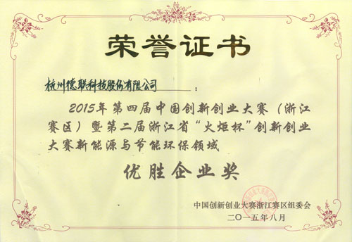 2015年8月17日,榴莲APP下载网址进入免费科技董事长胡真参加2015年第四届创新创业大赛暨第二届浙江省"火炬杯"创新创业大赛(新能源及节能环保专题),荣获优胜奖。2015年11月,荣获第四届创新创业大赛新能源及节能环保行业企业组第三名。